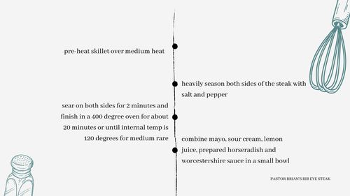 Create a gourmet meal at home for a fraction of the cost! Here are Pastor Brian's tips for making the perfect rib eye.