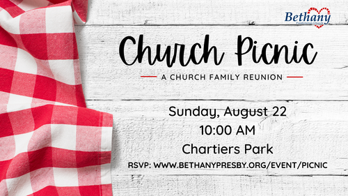Bethany's annual Church Picnic is this weekend! After so much time apart, let's reconnect with some fellowship and fun. Here's the link to RSVP: www.bethanypresby.org/event/picnic.